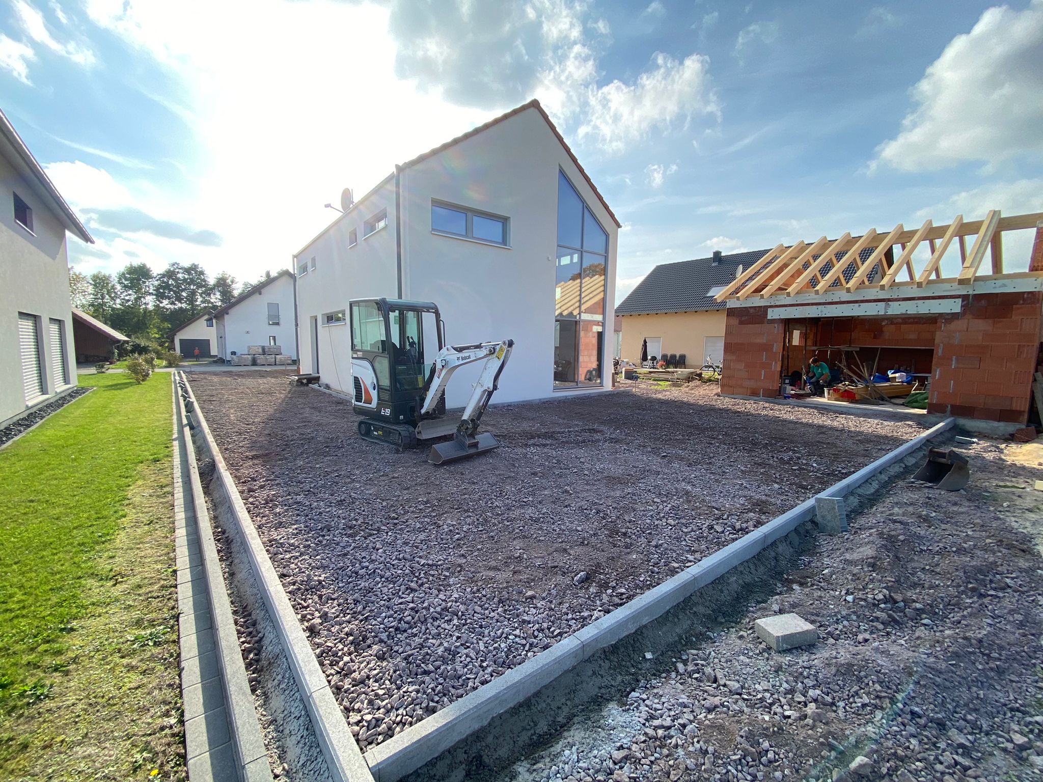 Wir bieten als Gartenbaufirma sorgfältige und preiswerte Arbeiten mit dem Bagger.